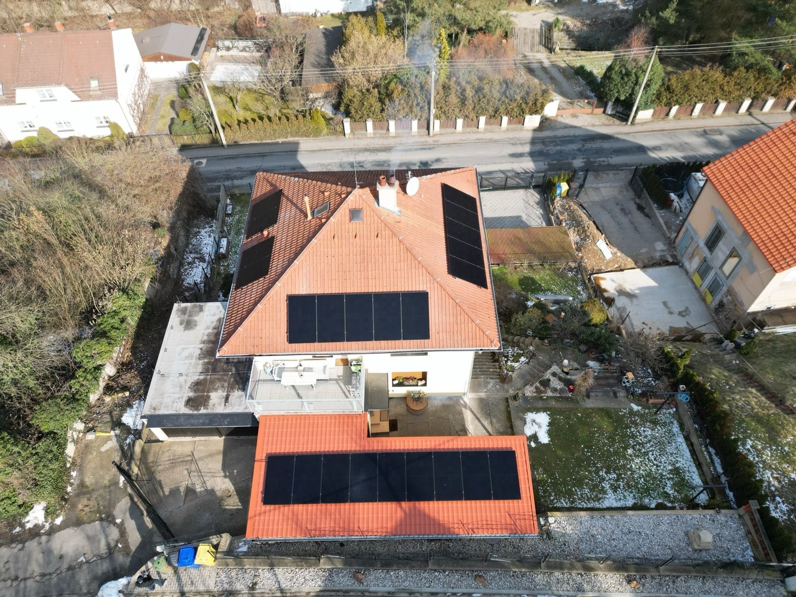 Důležitou součástí instalace je také bateriové úložiště SolarEdge Home Hub s kapacitou 9,2 kWh, díky kterému může domácnost využívat vlastní energii i večer nebo při výpadku sítě. Majitel tak získává vyšší energetickou nezávislost, ochranu před růstem cen elektřiny a jistotu stabilního provozu.