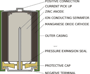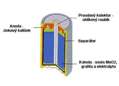 Alkalické články jsou zdokonalenou verzí zinko-chloridových článků a mají následující komponenty: