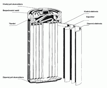 · Elektrolyt: Vodný roztok hydroxidu draselného (KOH) s přídavkem hydroxidu lithného